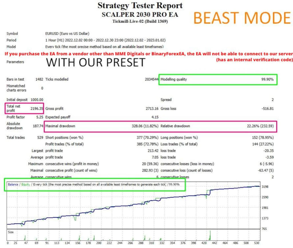 Unlike traditional bots, Scalper Pro EA continuously adapts to market volatility and liquidity in real time. Its intelligent algorithm connects to our server to update stop-loss levels and optimize entries — giving you a unique trading edge even in fast-moving markets.