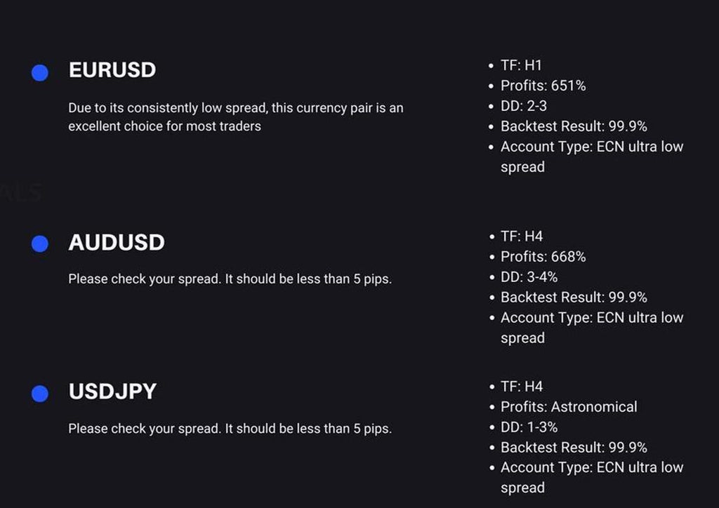 Supported Pairs: EURUSD, AUDUSD, USDJPY