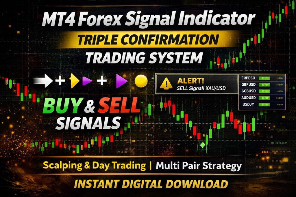 Many traders struggle because they enter the market too early or too late. This advanced MT4 signal trading system is designed to help traders identify clearer entry points using a powerful triple confirmation strategy.